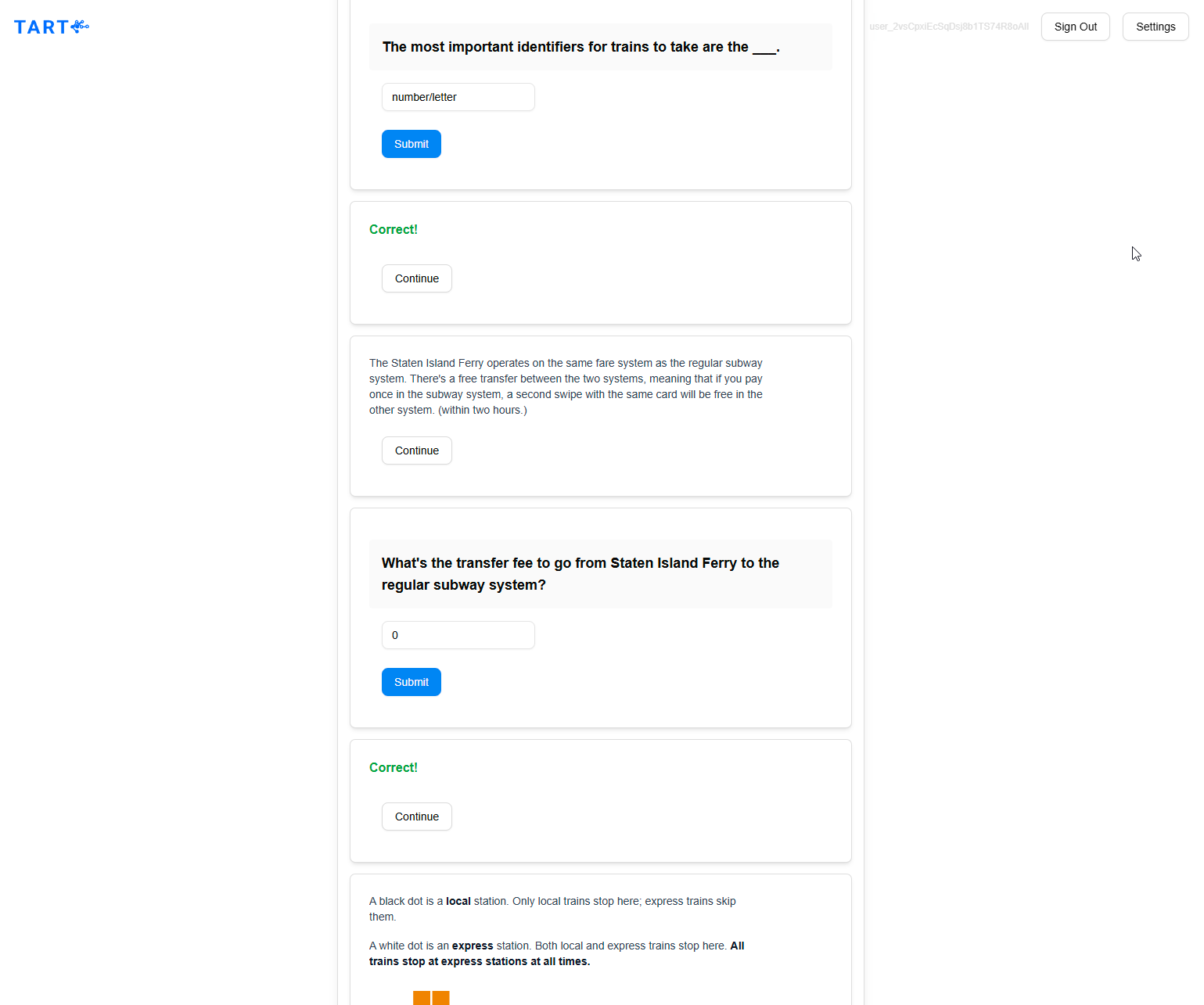 So as of now, the only use of my current TART code is as a playable semi-functional demo. The FSRS logic isn’t actually used, it’s more of just demo sessions that demonstrate question-answer feedback over a WebSocket connection with markdown & image rendering. There are no true topological orderings or spaced repetition algorithms here, and the questions are served at random under a demo curriculum about NYC. Naturally, a lot of this was vibe-coded (thanks v0!) and I’ve learned some limits and strengths of using LLMs for structuring and architecting projects like these.